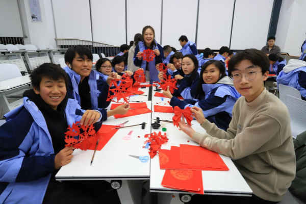 晚上,营员们与中国学生欢聚一堂,开展了一场丰富多彩的年俗交流活动。大家不仅亲手体验了剪窗花、写对联等传统习俗,还在欢声笑语中深入了解了中国年俗文化的深厚底蕴,感受到了中华民族传统节日的温馨氛围。